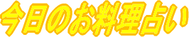 お料理占いへようこそ!このお料理占いは、調理師免許取得者が作成しています。占いの中に、料理のポイントが、それとなく入っていたりします。今日のメニューに悩んだら、今日のあなたの運勢を高める料理をうらなってください。使い方は、名前を入力して占いボタンをクリックしてください。ハンドルネームで結構です。そうすると、自動的に占いシステムが占ってくれます。この占いは、このお名前はここで使う以外に使用いたしません。安心して記入してください。